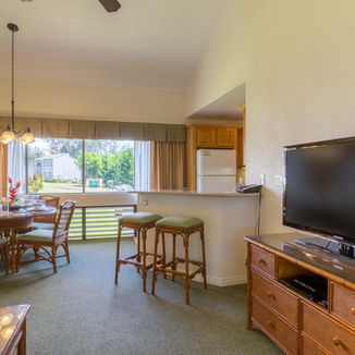 *1 Bedroom Condos normally include one private bedroom, separate living area, kitchen with appliances, dining area, and a pull out sofa. Room layouts can differ between resorts.